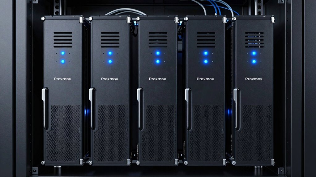 Proper cooling and ventilation are critical for a 2U rackmount server running Proxmox, as high-performance components generate significant heat that can compromise stability and lifespan. Adequate airflow prevents overheating and maintains reliable operation. This involves strategically placed intake and exhaust fans, such as 80mm PWM models, which enhance thermal management. The number and size of fans directly influence cooling efficiency, so choosing a server with sufficient fan capacity is essential. Additionally, ensuring unobstructed airflow paths around drive bays and heat-intensive components is essential. Monitoring system temperatures and airflow helps detect cooling issues early, allowing for prompt adjustments. Proper ventilation not only preserves hardware integrity but also guarantees consistent performance for demanding virtual environments.