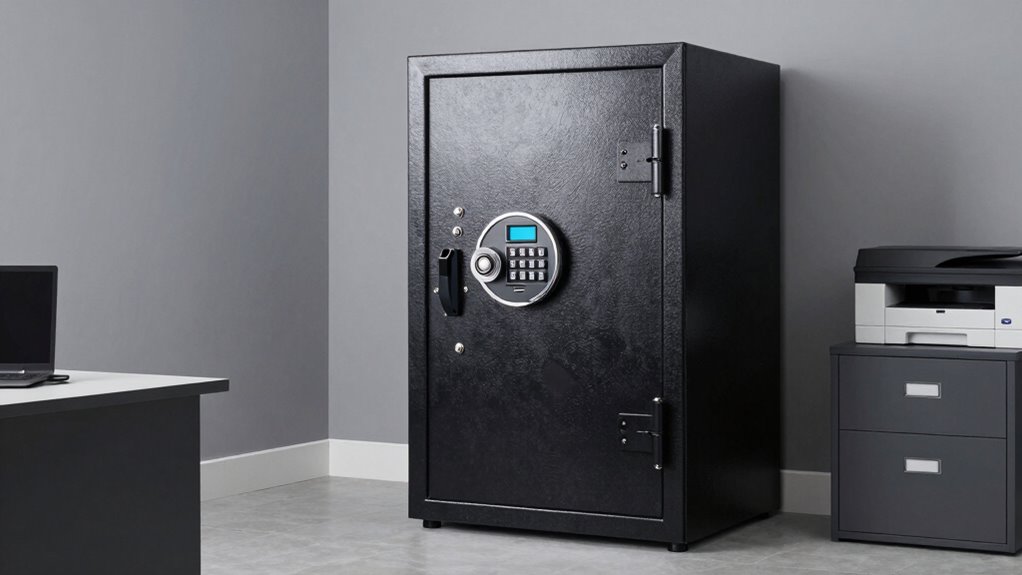 Choosing the right large burglar safe is essential for protecting your office equipment. With over 60% of office break-ins involving stolen electronics, investing in a high-quality safe is more important than ever. By considering features like fireproofing, waterproofing, and digital access, you can markedly reduce your risk. Remember, a well-chosen safe not only safeguards your assets but also provides peace of mind—making it a smart investment for any office.