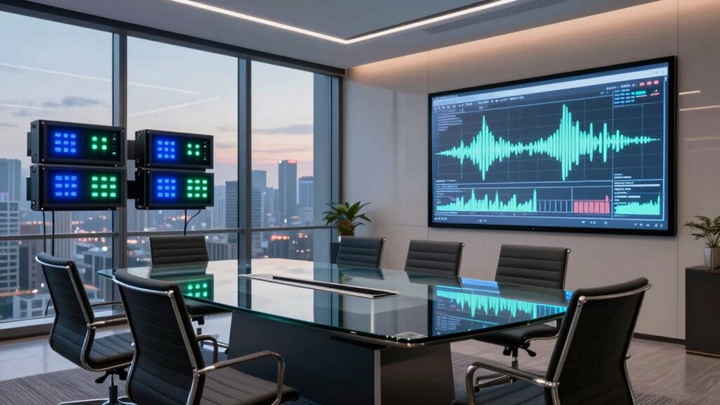 Imagine a chameleon blending seamlessly into its surroundings—that’s how modern DSPs adapt to room acoustics. I’ve seen these devices automatically tune themselves, adjusting parameters in real-time to optimize sound clarity. They analyze the environment’s unique echoes and reverberations, then precisely calibrate to minimize issues. It’s like having a skilled sound engineer working behind the scenes, ensuring every meeting sounds crisp, clear, and natural, no matter the room’s shape or size.