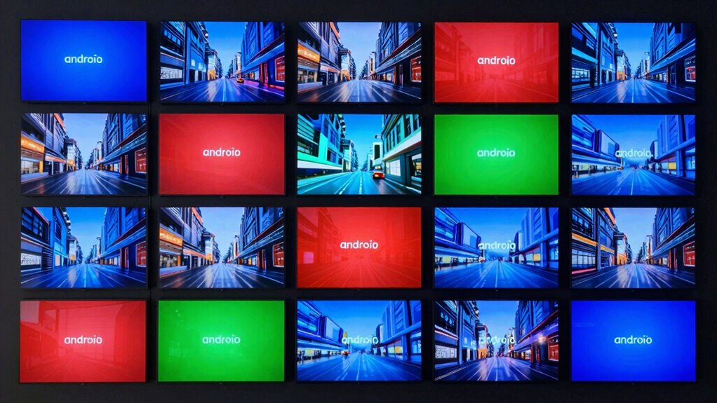 Choosing the right display size for signage with built-in Android depends on several essential factors. First, consider the environment and audience: smaller screens, like 15.6 inches, work well for interactive kiosks or whiteboards where viewers are close. Larger screens, such as 55 inches or more, are ideal for digital billboards or large-format advertising, offering better visibility from a distance. The size impacts how easily content can be seen and absorbed, so think about the viewing distance and the number of viewers. Multi-screen setups or tiled displays also provide flexible options, allowing for expansive visuals using multiple smaller units. Ultimately, selecting the appropriate size guarantees your message is clear, engaging, and effectively reaches your intended audience.