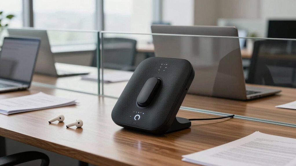 When considering connectivity options and compatibility, it’s also important to think about how portable and easy to use the speakerphone is across different open office spaces. A compact, lightweight design makes it simple to move between rooms or meeting areas without hassle. Features like built-in carry cases or straps further streamline transportation and quick setup. Durable materials such as metal casings or reinforced plastics ensure the device withstands frequent travel and daily wear. Sleek, minimalistic designs help the speakerphone blend seamlessly into modern work environments, avoiding visual clutter. Additionally, its size and shape should allow for easy placement on desks or conference tables without obstructing other workspace elements. Overall, a thoughtful design enhances usability and guarantees the device fits well into dynamic open office settings.