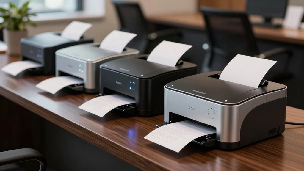 When choosing receipt printers for sensitive environments, I focus on security features like encrypted data transmission, secure print queues, and user authentication. These ensure that sensitive customer info stays protected from unauthorized access. I also look for tamper-evident designs and automatic data wiping capabilities. These features give me peace of mind, knowing that confidential information remains secure and compliant with privacy standards.