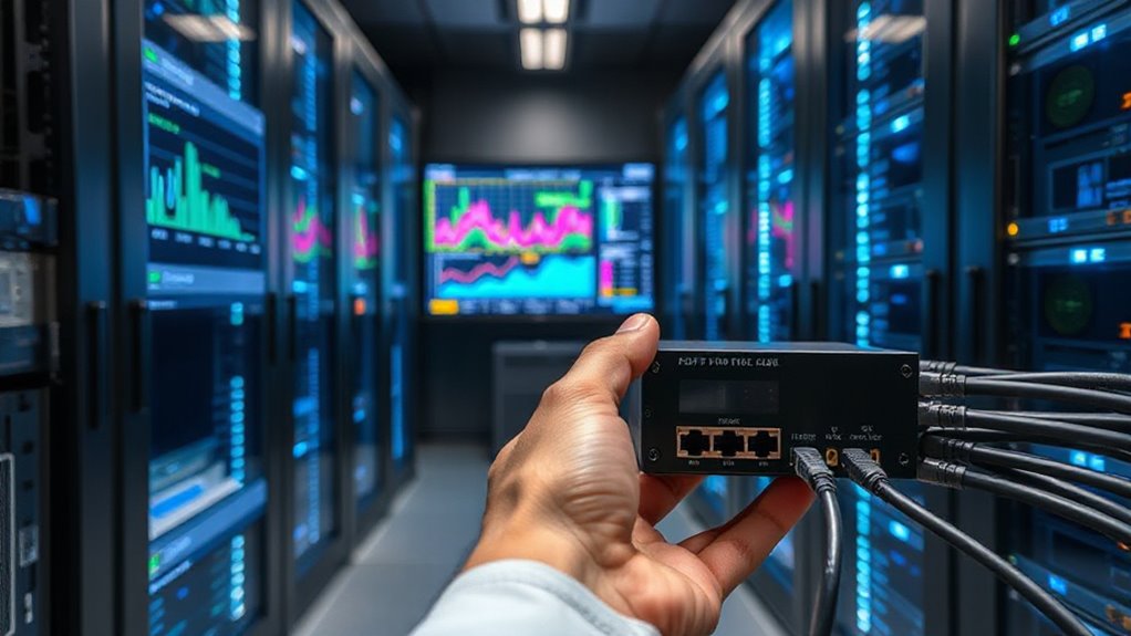 When it comes to installing a tap device for network monitoring, ease of setup can make a significant difference in how smoothly your deployment goes. I look for devices that offer plug-and-play connectivity with minimal configuration, saving time and reducing errors. Auto cross-over ports are a big plus, as they eliminate the need to manually adjust cables, speeding up installation. Supporting universal interfaces like USB or standard Ethernet ports makes integration straightforward, avoiding the hassle of specialized adapters. Clear, intuitive instructions or minimal assembly steps are essential to minimize setup time. Additionally, inline connection options allow seamless integration into existing network infrastructure without requiring specialized tools. Overall, a device that simplifies installation ensures a faster, more efficient deployment process.
