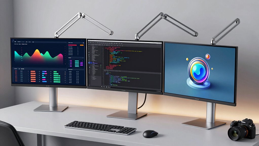 Think of a triple monitor arm like a sturdy bridge—reliable and built to support your work. Most come with warranties and responsive customer support, giving you peace of mind. I’ve found that reputable brands stand behind their products, offering help if issues arise. It’s comforting knowing that when I invest in quality, I also gain a safety net, ensuring my setup stays smooth and stress-free.