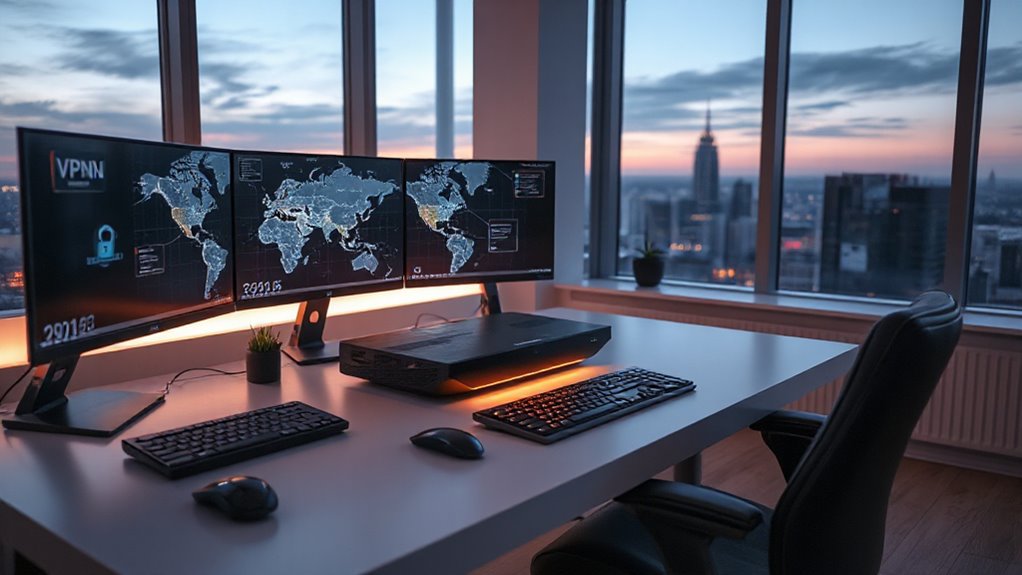 Choosing the right VPN router is like finding your perfect bridge across a digital river—secure, reliable, and swift. With options like sleek portable models or powerful gigabit behemoths, you can tailor your setup to your remote work adventures. Think of your VPN router as the sturdy vessel that keeps your connection sailing smoothly through stormy cyber seas. Pick the right one, and your remote work journey becomes a smooth, uninterrupted voyage.